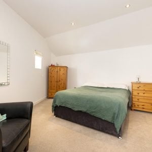 Upstairs, the master bedroom is super spacious with four skylight windows to enjoy the beautiful Scottish sunrise or sunset. It also features a door out onto a small balcony where you can enjoy a cup of Scottish tea in the morning before you head out for a day of visiting the historic sites of Edinburgh. An additional modern family bathroom on the first floor features a bath and separate shower.