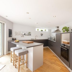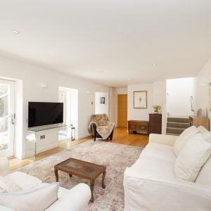 Both the kitchen and living room open out onto this space making for an amazing open-plan living feel. The flat features 3 large bedrooms (two upstairs and one on the ground floor), each with ample king-sized beds. On the ground floor there is a sleek wet room and a superbly bright and comfortable living room with two sofas and a large TV, making for a cosy space to relax after a busy day of sight-seeing. The kitchen is kitted out to a very high standard with all the mod-cons, a breakfast bar with bar seating, a dining area with space for 6 people to enjoy a meal together, and screen doors which open out onto the courtyard so you can enjoy the best of indoor-outdoor living.