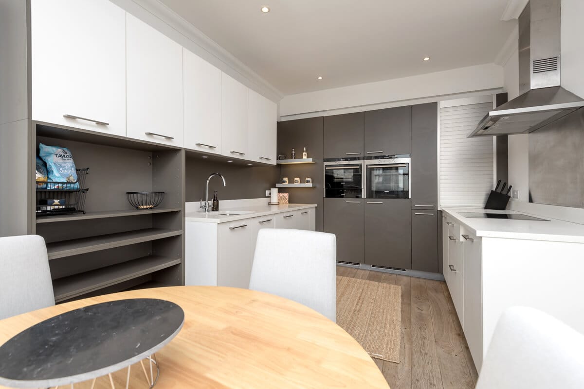 In the mood for some cooking? Wander into the fully equipped kitchen, where contemporary design meets practicality. With a mix of white and grey finishes, ample counter space, and all the essential appliances – including an oven, toaster, and kettle – you’ll have everything you need to prepare anything from a leisurely breakfast to a homemade dinner. The adjacent dining area, seating up to four, offers the perfect setting for relaxed meals and lively conversation after a day exploring the city.